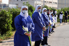 تشییع پیکر سیده فاطمه نجمالسادات، شهید مدافع سلامت استان خوزستان شاغل در بیمارستان امیرالمؤمنین(ع) اهواز که به دلیل ابتلا به ویروس کرونا درگذشت، امروز 10 اسفندماه در اهواز برگزار شد.