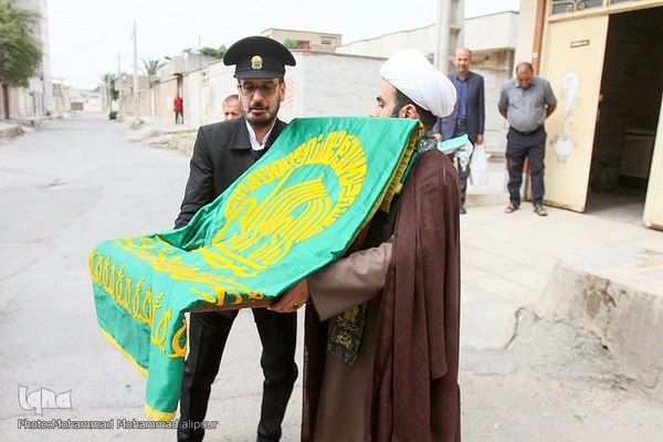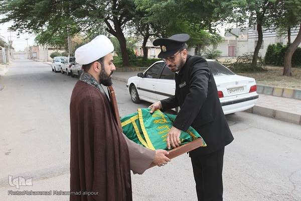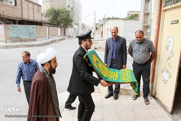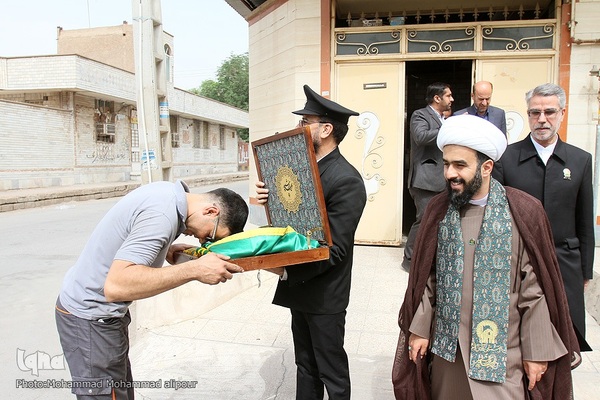 به مناسبت دهه کرامت، خدام حرم رضوی با پرچم متبرک حرم مطهر امروز پنجشنبه ۴ خرداد به دیدار خانواده شهید طرفیزاده از شهدای دوران دفاع مقدس در اهواز رفتند.