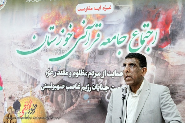 اجتماع جامعه قرآنی خوزستان در حمایت از مردم مظلوم و مقتدر غزه و محکومیت جنایات رژیم صهیونیستی شامگاه ۲۹ مهرماه در حسینیه نورالثقلین اهواز برگزار شد.