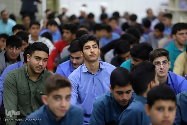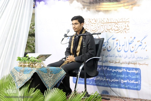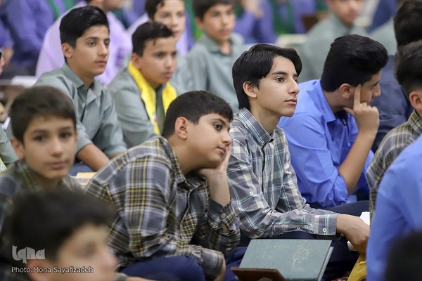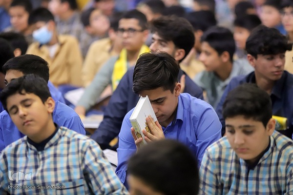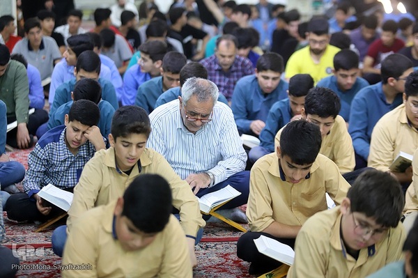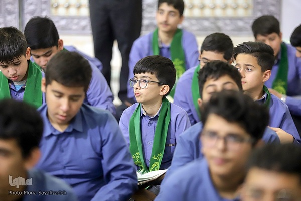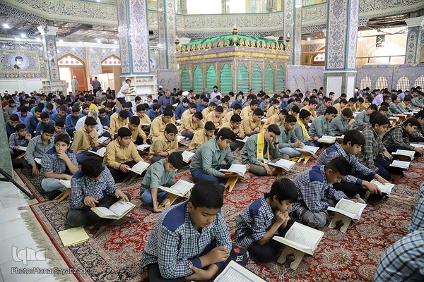 محفل انس با قرآن کریم با حضور دانشآموزان مدارس دولتی اهواز به یاد شهدای دانشآموز غزه امروز 20 فروردینماه در حرم علیبن مهزیار اهوازی برگزار شد.