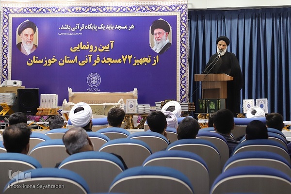 آیین اهدای تجهیزات به 72 مسجد قرآنی استان خوزستان امروز 15 مردادماه با حضور نماینده ولی فقیه، در دارالقرآن استان برگزار شد.
