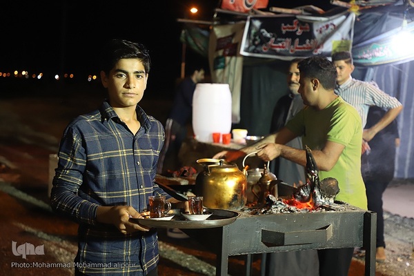 خدمت به زائران امام حسین(ع) در استان خوزستان، راههای منتهی به مرزهای کشور و همچنین مرزهای چذابه و شلمچه در روزهای شلوغ رفت و آمد به کشور عراق با همه توان انجام میشود. مواکب دیگر تنها با یک نفر خدمترسانی نمیکنند بلکه خانوادهها با پدر و مادر و فرزندان و حتی مادربزرگها و پدربزرگها مشغول خدمترسانی به زائران اربعین حسینی هستند.
