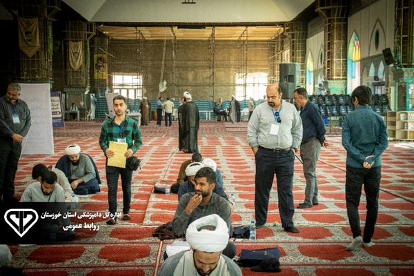 نخستین آزمون جذب محدود ناظرین شرعی کشور با حضور طلاب واجد شرایط استان خوزستان در محل مصلای مهدیه امام خمینی(ره) با نظارت مسئول حوزه نمایندگی جهاد کشاورزی استان خوزستان، مدیرکل دامپزشکی استان و مسئول دفتر نمایندگی دامپزشکی استان خوزستان با حضور یکصد نفر برگزار شد.